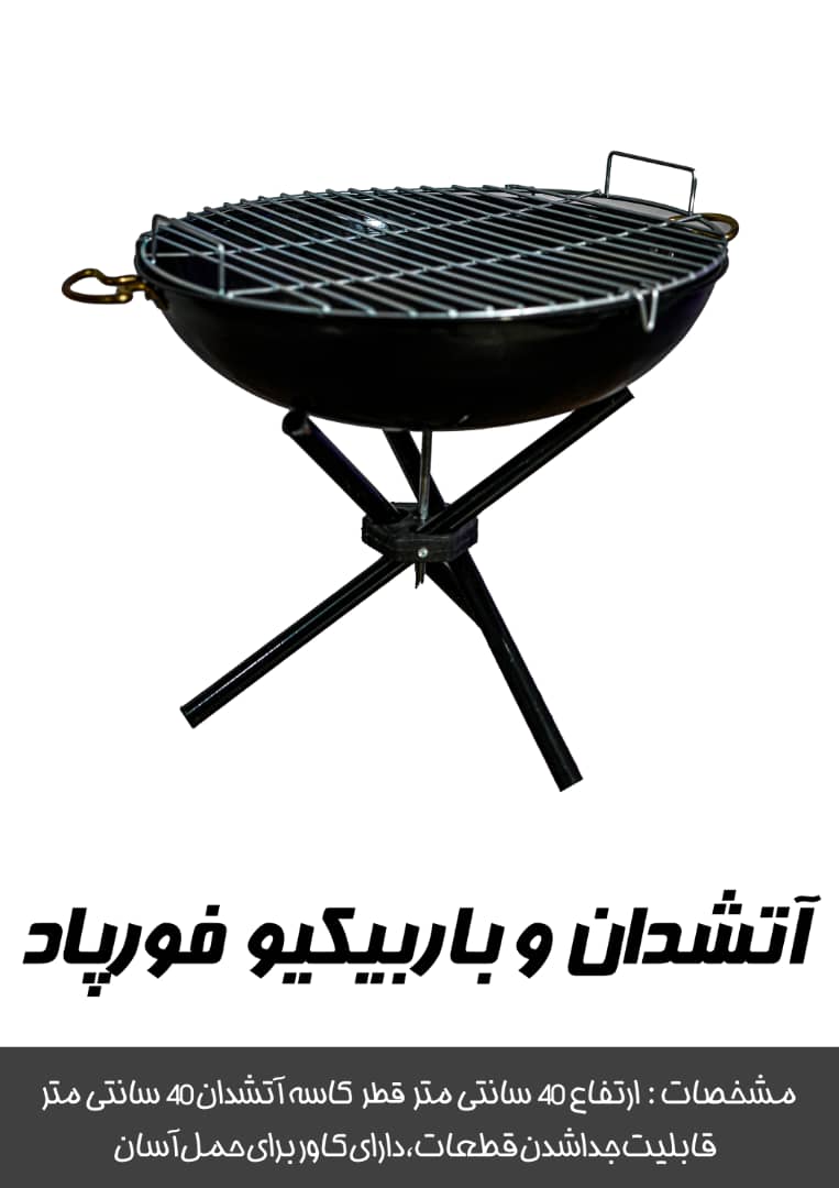 🔥 آتشدان و باربیکیو فورپاد – لذت آشپزی در فضای باز! 🍢اگه عاشق کباب کردن و آشپزی در طبیعت هستی، آتشدان و باربیکیو فورپاد یه انتخاب فوقالعاده برای توئه! 🏕️🔥✔ ارتفاع ۴۰ سانتیمتری – طراحی استاندارد و کاربردی✔ کاسه آتشدان ۴۰ سانتیمتری – مناسب برای پخت انواع غذاهای کبابی✔ قابلیت جدا شدن قطعات – حمل و نگهداری آسان✔ دارای کاور مخصوص – حمل راحت و بدون دردسریه همراه ایدهآل برای پیکنیک، کمپینگ و دورهمیهای دوستانه! 🌿🔥📍 همین حالا سفارش بده و طعم یه کباب خوشمزه در دل طبیعت رو تجربه کن! 🍖🔥